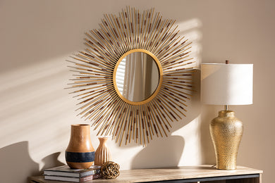 Baxton Studio Apollonia Modern and Contemporary Gold Finished Sunburst Accent Wall Mirror