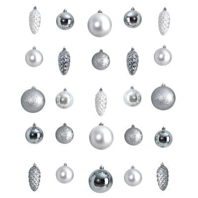 Holiday Christmas 30 Count 2.5" Shatterproof Ornament Set with Re-Useable Storage Container