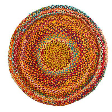 4'x 4'Hand Braided Colorful Chindi Jute Mandala Round Rug