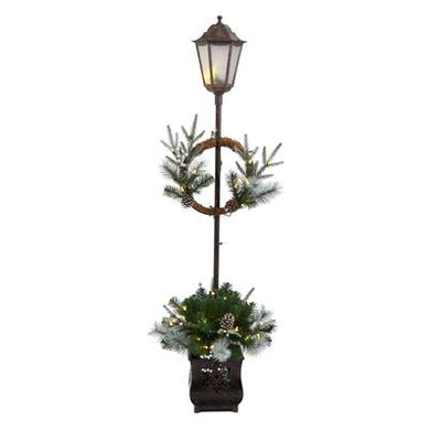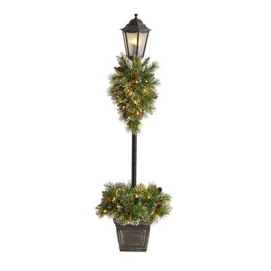 5'Holiday Pre-lit Decorated Lamp Post with Artificial Christmas Greenery, Decorative Container and 50 LED Lights Indoor Outdoor Patio Porch Decor