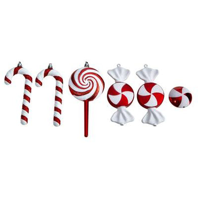 7" Assorted Candy Cane Holiday Christmas Deluxe Shatterproof Ornament Set of 6