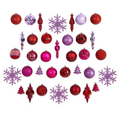Holiday Christmas 40 Count Lux Shatterproof Ornament Set with Re-Useable Storage Container