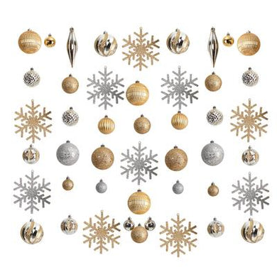 Holiday Deluxe Shatterproof, 52 Count Christmas Tree Ornament Box Set, Re-Useable Container