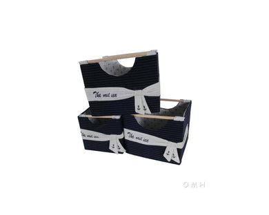 Anne Home - Set of 5 Blue Fabric Basket With Bow Decoration
