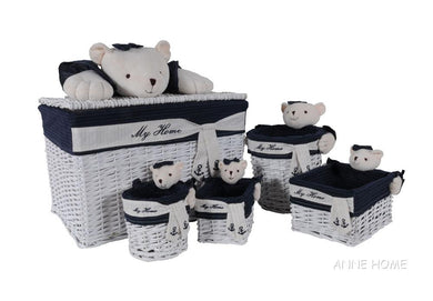 Anne Home - Set of 5 Rectangular Willow Baskets Bear Design
