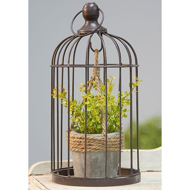Metal Birdcage with Cement and Jute Plant Holder Small (Pack of 2)