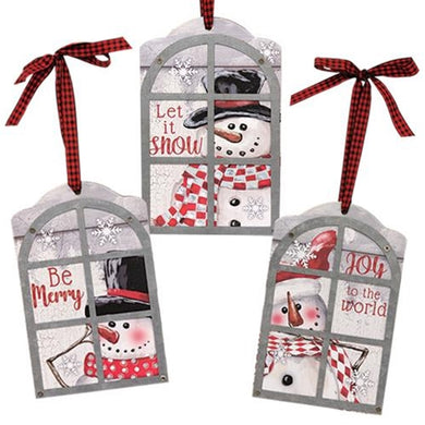 Wood/Galvanized Snowman Window Pane Ornament 3 Asstd. (Pack of 4)