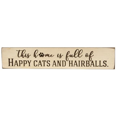 This Home Is Full of Happy Cats and Hairballs Engraved Sign Buttermilk 18" (Pack of 2)