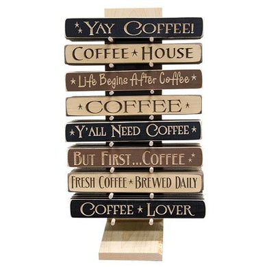 48 Piece Coffee 12" Engraved Block Assortment With Display Rack