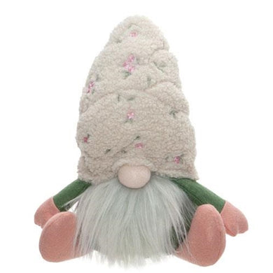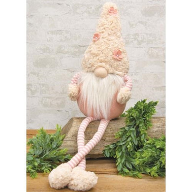 Fuzzy Cream Hat Gnome w/Pink Ribbon