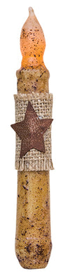 6" Burnt Ivory Burlap & Star Timer Taper (Pack of 2)