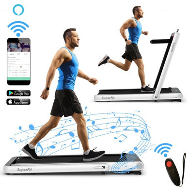 2-in-1 Folding Treadmill with RC Bluetooth Speaker LED Display-White
