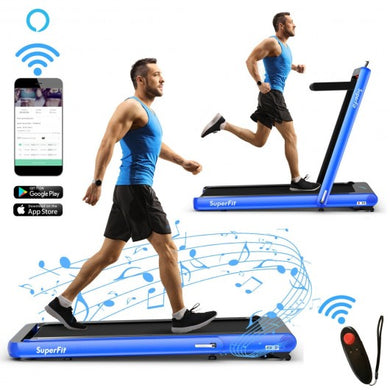 2-in-1 Folding Treadmill with RC Bluetooth Speaker LED Display-Blue