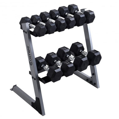 2 Tier 29" Dumbbell Weight Storage Rack + Multiple Weights Set