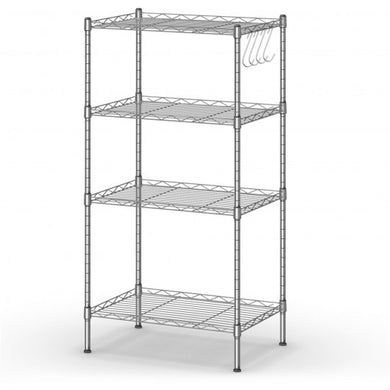 4-Wire Shelving Metal Adjustable Storage Rack with Removable Hooks-Silver