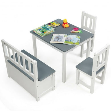 Adjustable Kids Activity Play Table and 2 Chairs Set withStorage Drawer-Natural