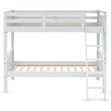 Twin Over Twin Bunk Bed Convertible 2 Individual Beds Wooden -White