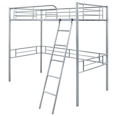 Metal Loft Twin Bed Frame Single High Loft Bed-Silver
