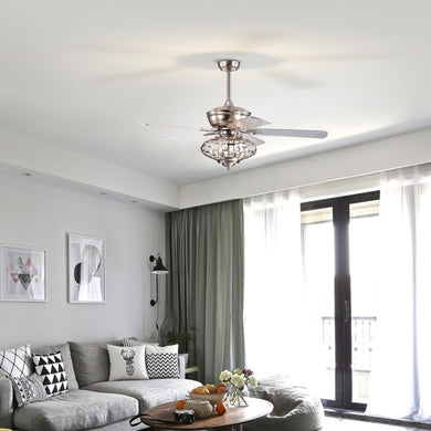 52 Inch 3-Speed Crystal Ceiling Fan Light with Remote Control-Black