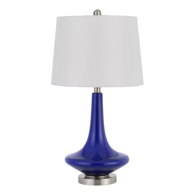 100W Kleve Glass Table Lamp With Taper Drum Hardback Linen Shade (Priced And Sold As Pairs)