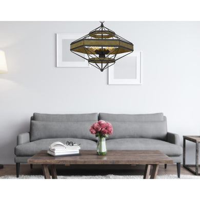 60W X 6 Baden Metal/Wood Chandelier With Mesh Shades (Edison Bulbs Are Not included)