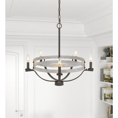 Alicante 60W X 6 Pine Wood/Metal Chandelier (Edison Bulbs Not included)