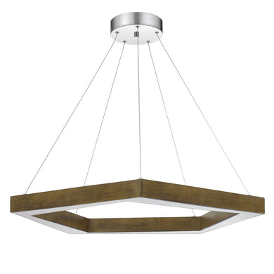 Metz dimmable Integrated LED polygon pine wood pendant fixture. 38W, 3000 lumen, 3000K, Pine