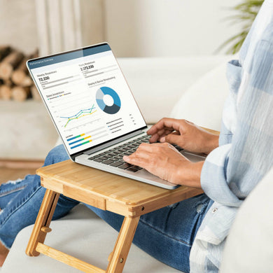 • Bamboo Laptop Lap Tray with Adjustable Legs and Tilting Heat-dissipation Top-Natural