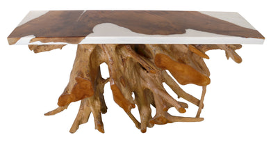 • 60 Inch Teak Root Console White Resin