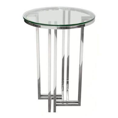 • DEKO Polished Stainless Steel Round Accent Table w/ Clear, Tempered Glass Top by Diamond Sofa