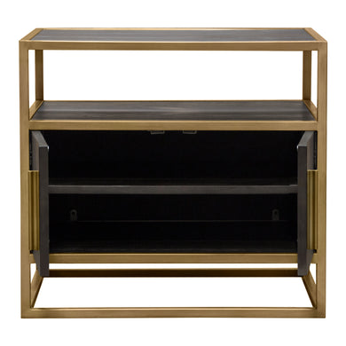 • Empire 2-Door End Table in Dark Brown Veneer w/ Hand brushed Gold Metal Frame by Diamond Sofa