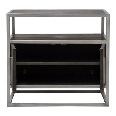 • Empire 2-Door End Table in Dark Brown Veneer w/ Hand brushed Silver Metal Frame by Diamond Sofa