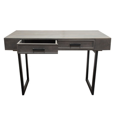 • Hammond 2-Drawer Writing Desk in Solid Mango Wood Grey Finish & Black Iron Legs by Diamond Sofa