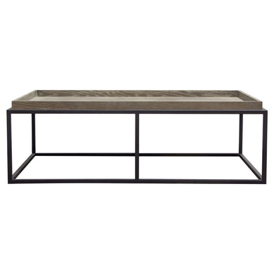 • Lex Rectangle Cocktail Table in Rustic Oak Veneer Finish Top w/ Black Powder Coated Metal Base by Diamond Sofa