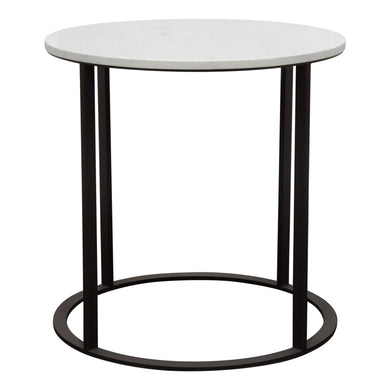 • Surface Round End Table w/ Engineered Marble Top & Black Powder Coated Metal Base by Diamond Sofa