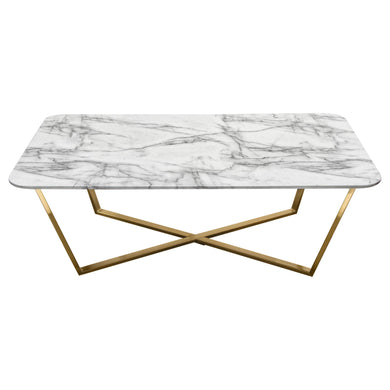 • Vida Rectangle Cocktail Table w/ Faux Marble Top and Brushed Gold Metal Frame by Diamond Sofa