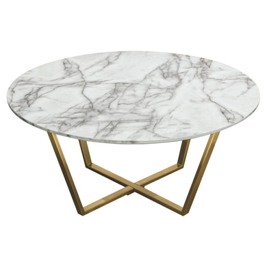 • Vida 35" Round Cocktail Table w/ Faux Marble Top and Brushed Gold Metal Frame by Diamond Sofa
