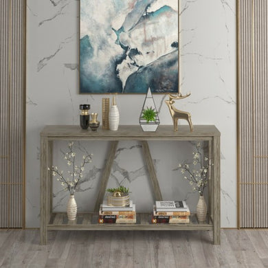 • Fig Solid Mango Wood Accent Table in Grey Finish w/ Geometric Motif by Diamond Sofa