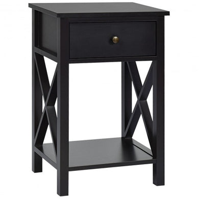 • Nightstand End Beside Table Drawers Modern Storage Bedroom Furniture-Black