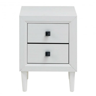 • Wood Accent End Nightstand w/ 2 Storage Drawers-White