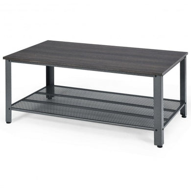 • Metal Frame Wood Coffee Table Console Table with Storage Shelf-Black