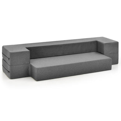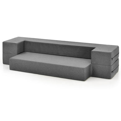Convertible Memory Foam Futon Sofa Bed with Adjustable Armrest-Gray
