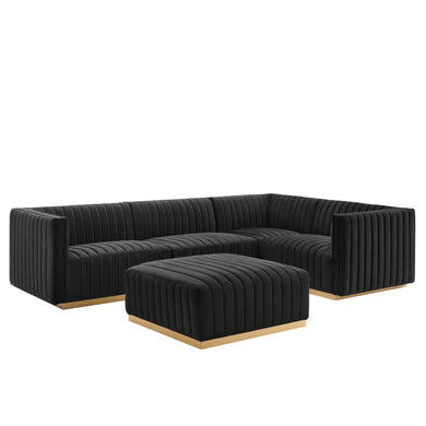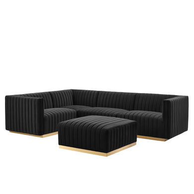 • Sanguine 4-Piece Channel Tufted Performance Velvet Left-Facing Modular Sectional Sofa by Modway