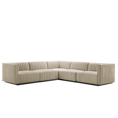 • Conjure 5-Piece Channel Tufted Upholstered Fabric L-Shaped Sectional by Modway