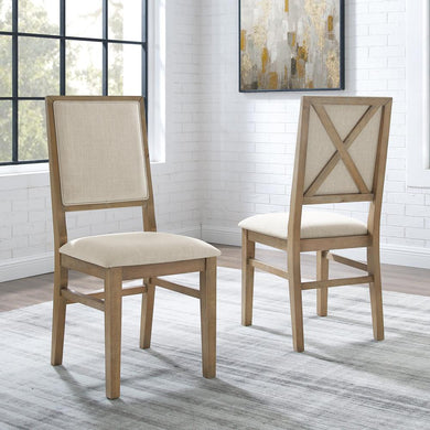Joanna 2Pc Upholstered Back Chair Set Rustic Brown /Creme - 2 Upholstered Chairs