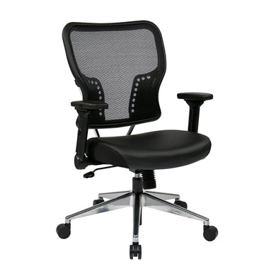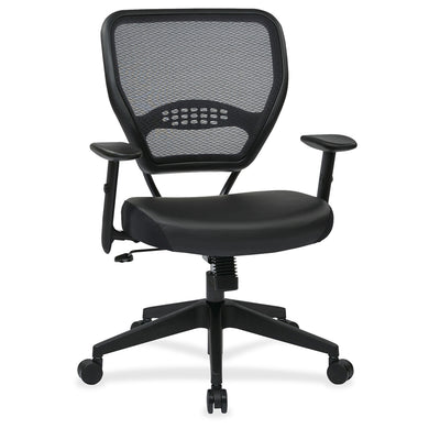 Office Star Professional Dark Air Grid Back Managers Chair - Leather Seat - 5-star Base - Black - 1 Each