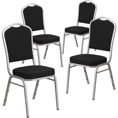 4 Pk. Stacking Chair with Black Fabric and 2.5'' Thick Seat - Silver Frame