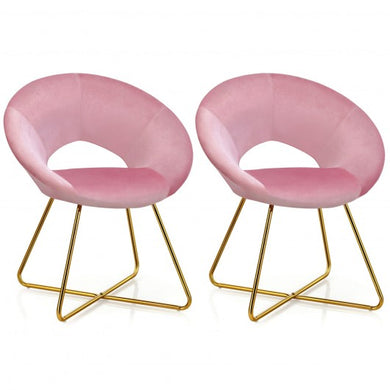 Set of 2 Accent Velvet Chairs Dining Chairs Arm Chair with Golden Legs-Pink