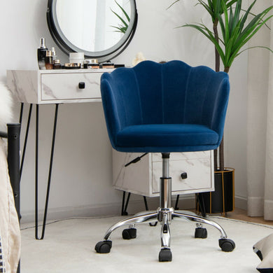 Adjustable Velvet Arm Chair with Wheels-Blue