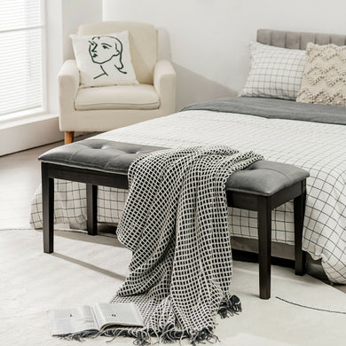 Upholstered Dining Room PU Bench Solid Wood Button Tufted-Gray